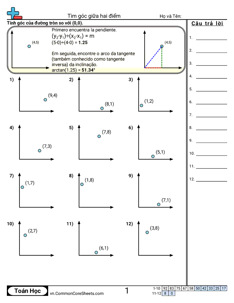 Phiếu bài tập math miễn phí về Tìm góc giữa hai điểm. Mỗi phiếu có 12 bài tập kèm đáp án và phù hợp cho giáo viên và học tại nhà. Bạn có thể tải PDF, tạo thẻ ghi nhớ hoặc dùng cho học trực tuyến.