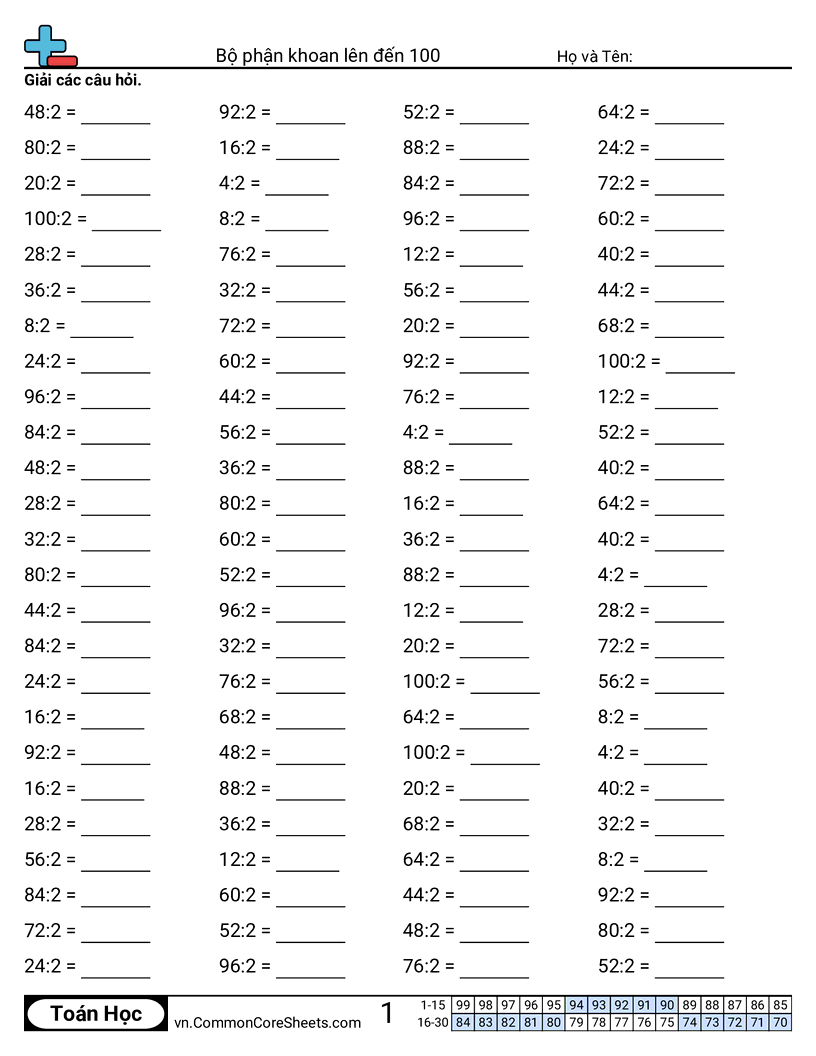 Phiếu bài tập math miễn phí về Bộ phận khoan lên đến 100. Mỗi phiếu có 100 bài tập kèm đáp án và phù hợp cho giáo viên và học tại nhà. Bạn có thể tải PDF, tạo thẻ ghi nhớ hoặc dùng cho học trực tuyến.