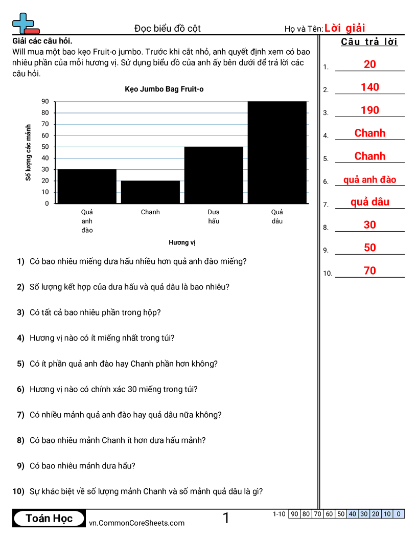 Phiếu bài tập math miễn phí cho Lớp 2 (2md10) về Đọc biểu đồ cột. Mỗi phiếu có 10 bài tập kèm đáp án và phù hợp cho giáo viên và học tại nhà. Bạn có thể tải PDF, tạo thẻ ghi nhớ hoặc dùng cho học trực tuyến.
