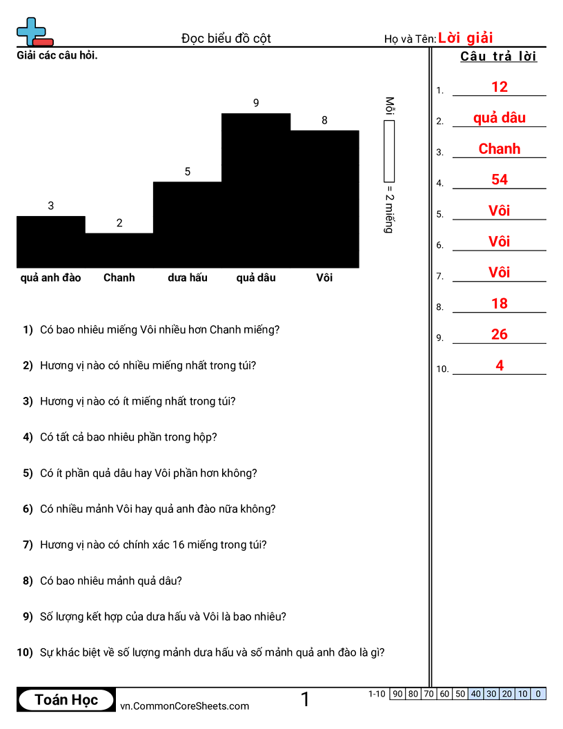 Phiếu bài tập math miễn phí cho Lớp 3 (3md3) về Đọc biểu đồ cột. Mỗi phiếu có 10 bài tập kèm đáp án và phù hợp cho giáo viên và học tại nhà. Bạn có thể tải PDF, tạo thẻ ghi nhớ hoặc dùng cho học trực tuyến.
