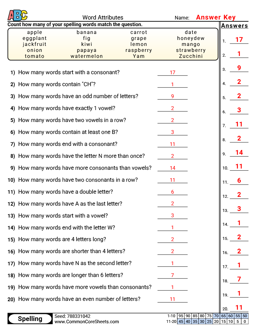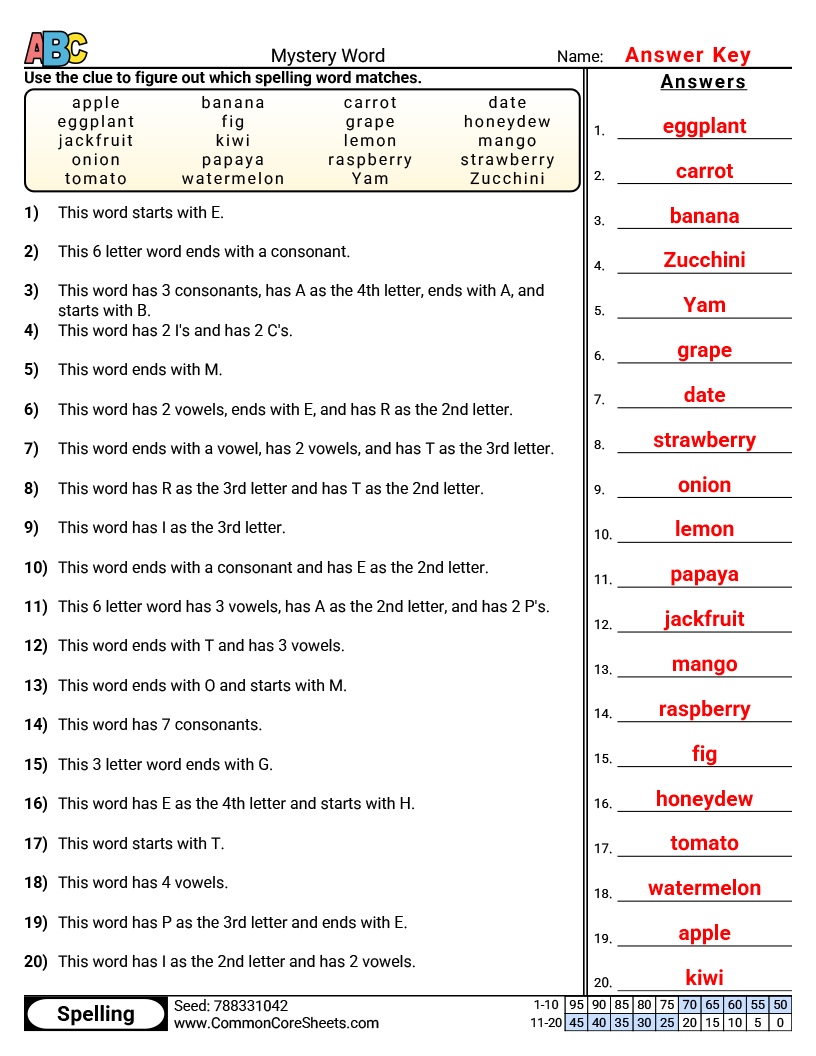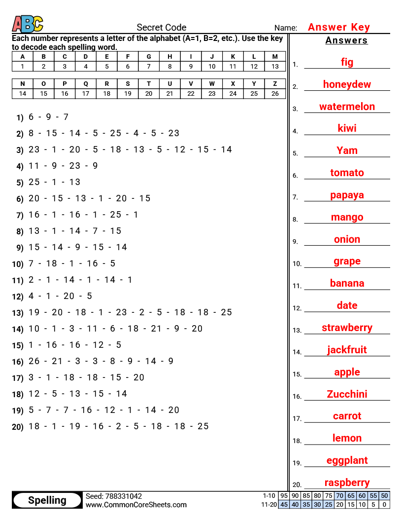 Grade assignments in seconds with CommonCoreSheets' answer column.