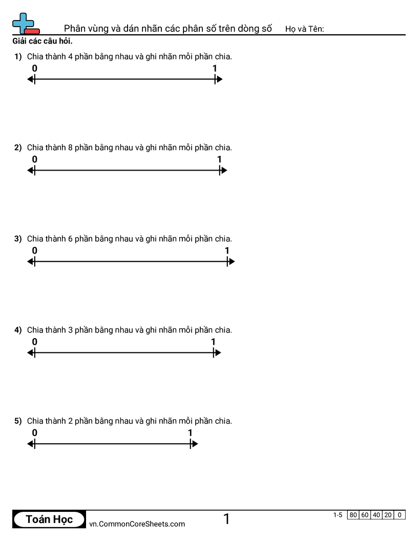 Phiếu bài tập math miễn phí cho Lớp 3 (3nf2a) về Phân vùng và dán nhãn các phân số trên dòng số. Mỗi phiếu có 5 bài tập kèm đáp án và phù hợp cho giáo viên và học tại nhà. Bạn có thể tải PDF, tạo thẻ ghi nhớ hoặc dùng cho học trực tuyến.