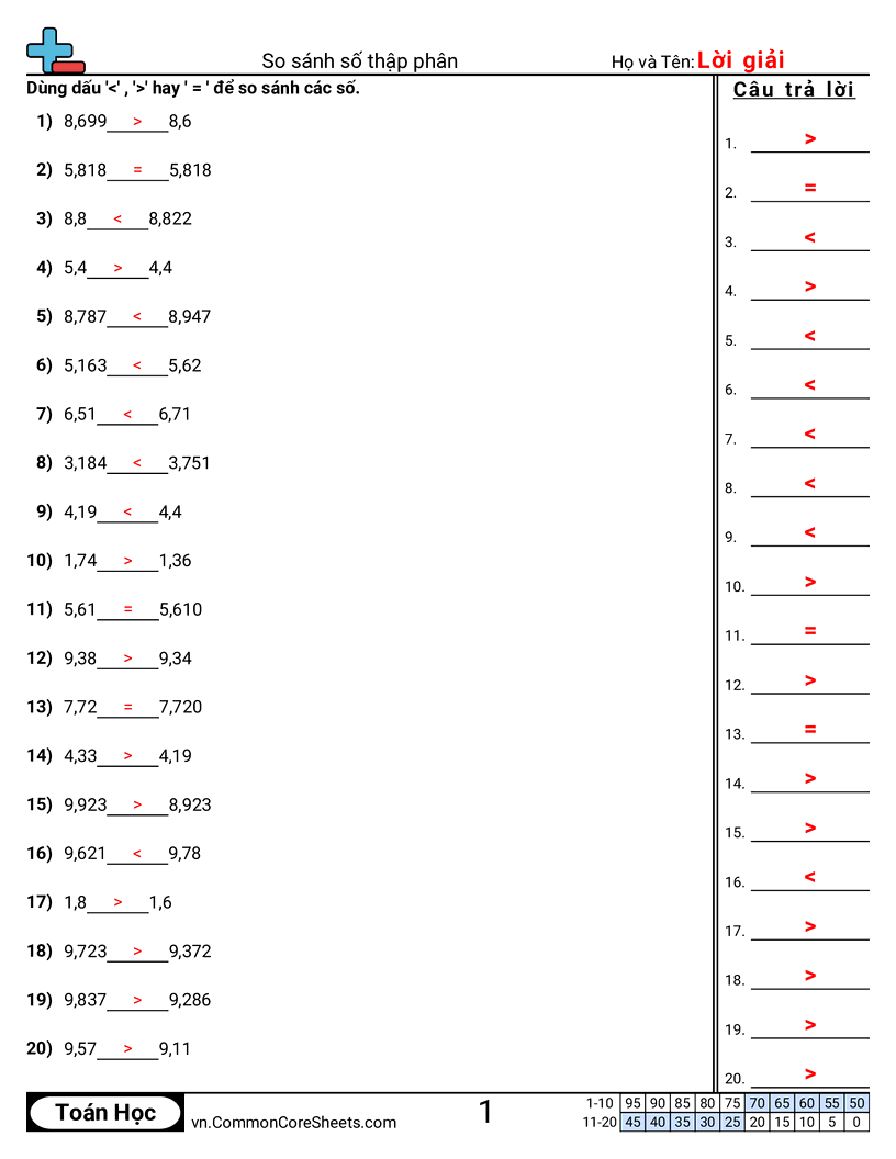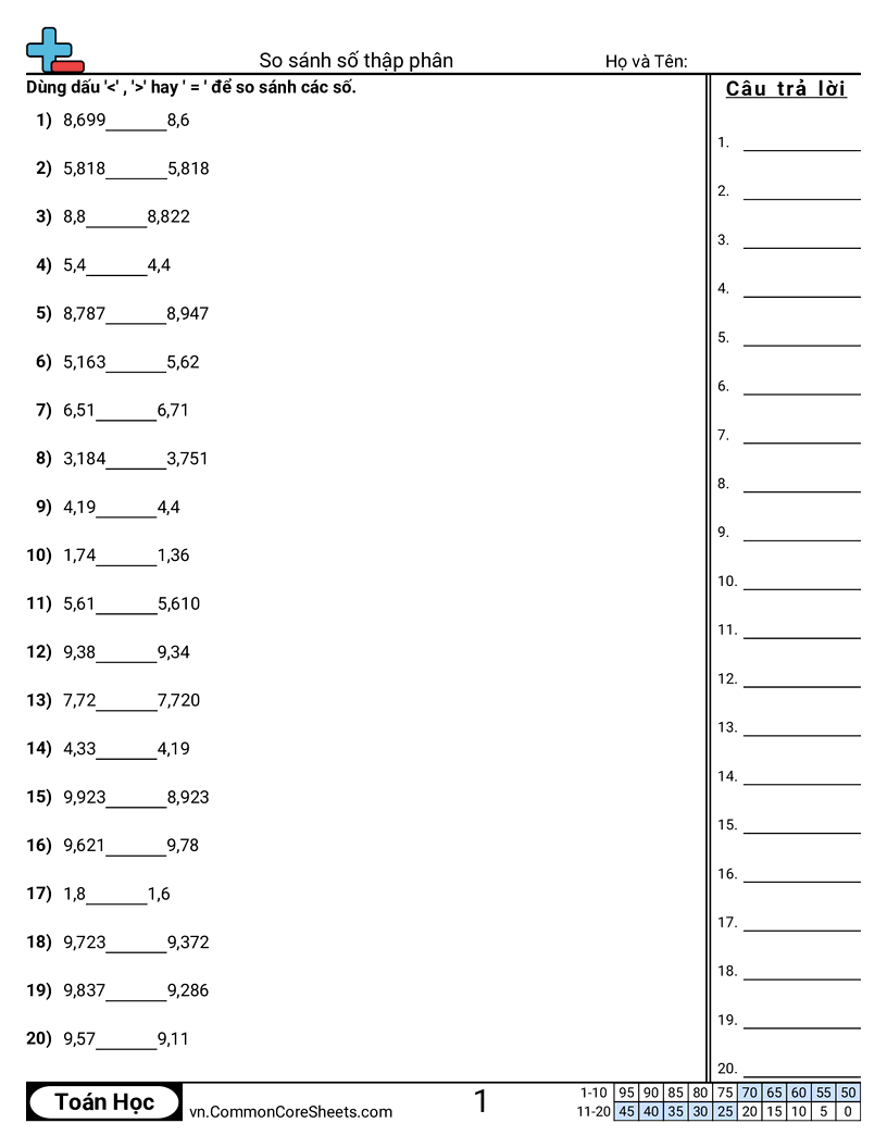 Phiếu bài tập math miễn phí cho Lớp 5 (5nbt3b) về So sánh số thập phân. Mỗi phiếu có 20 bài tập kèm đáp án và phù hợp cho giáo viên và học tại nhà. Bạn có thể tải PDF, tạo thẻ ghi nhớ hoặc dùng cho học trực tuyến.