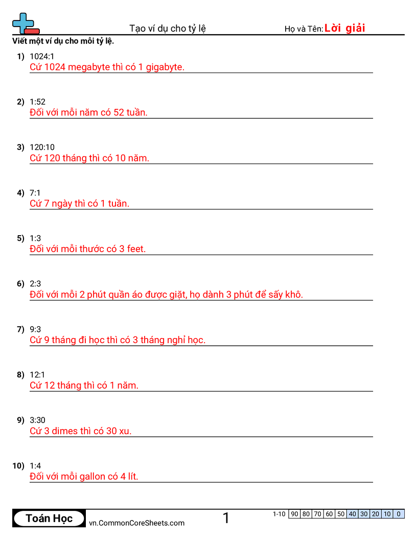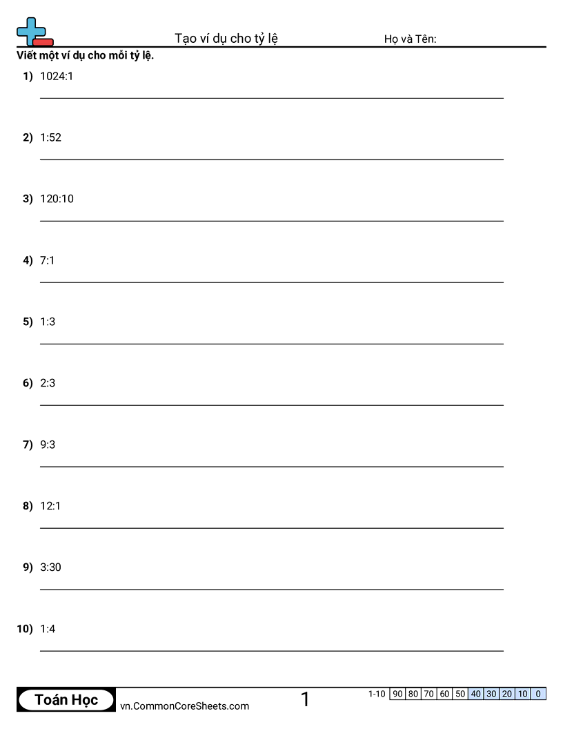 Tạo ví dụ cho tỉ lệ