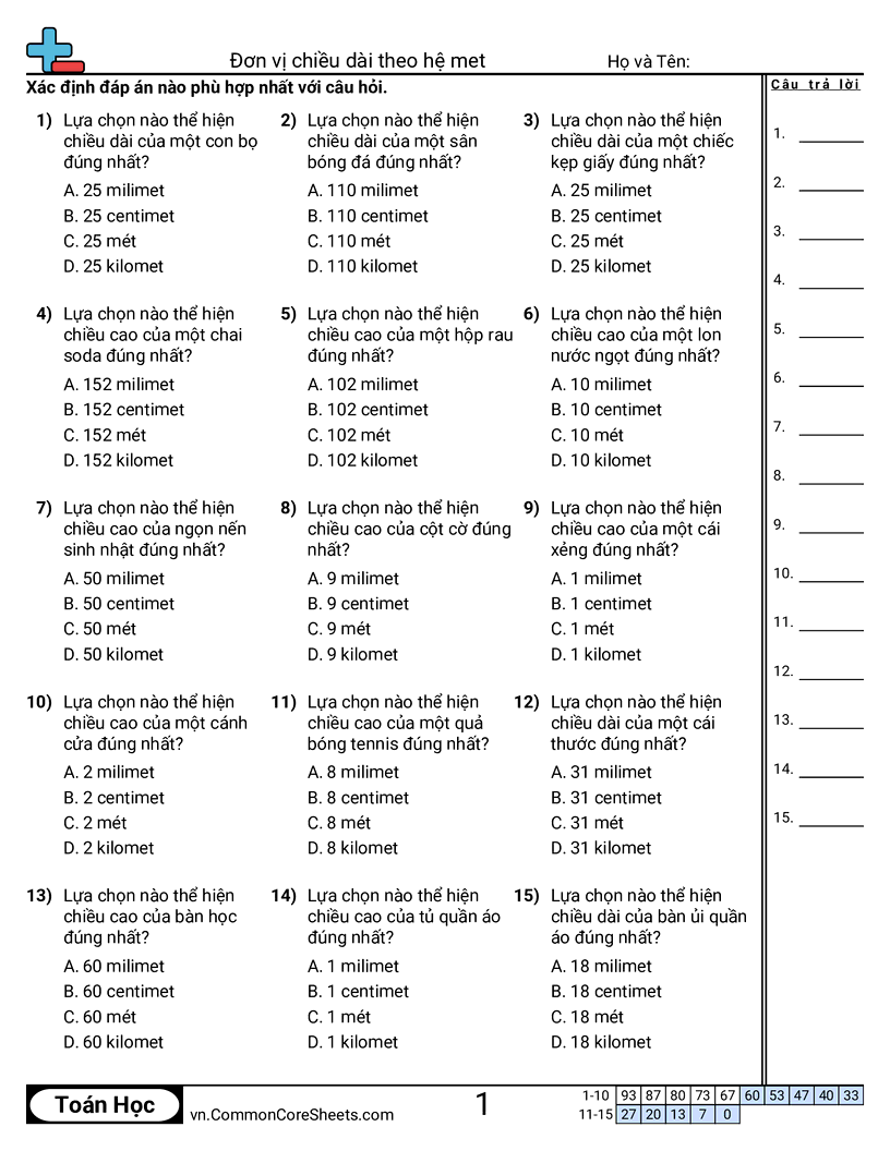 Phiếu bài tập math miễn phí cho Lớp 4 (4md1) về Đơn vị chiều dài theo hệ met. Mỗi phiếu có 15 bài tập kèm đáp án và phù hợp cho giáo viên và học tại nhà. Bạn có thể tải PDF, tạo thẻ ghi nhớ hoặc dùng cho học trực tuyến.