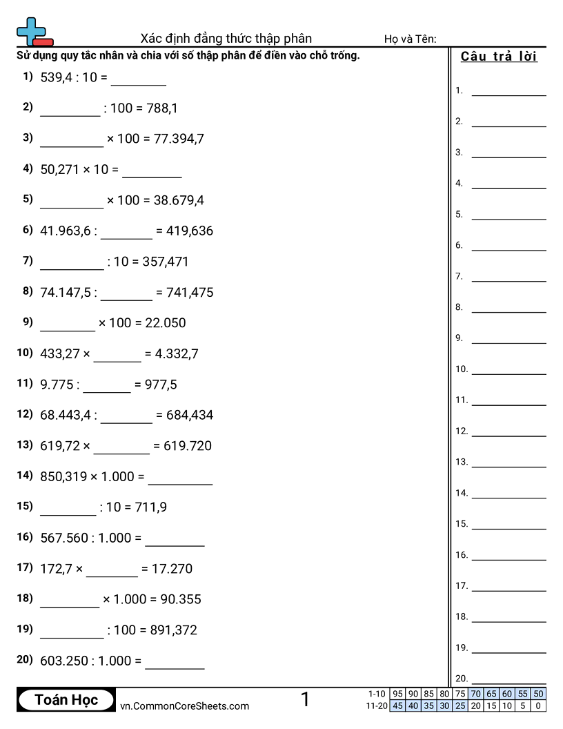 Phiếu bài tập math miễn phí cho Lớp 5 (5nbt2) về Xác định đẳng thức thập phân. Mỗi phiếu có 20 bài tập kèm đáp án và phù hợp cho giáo viên và học tại nhà. Bạn có thể tải PDF, tạo thẻ ghi nhớ hoặc dùng cho học trực tuyến.