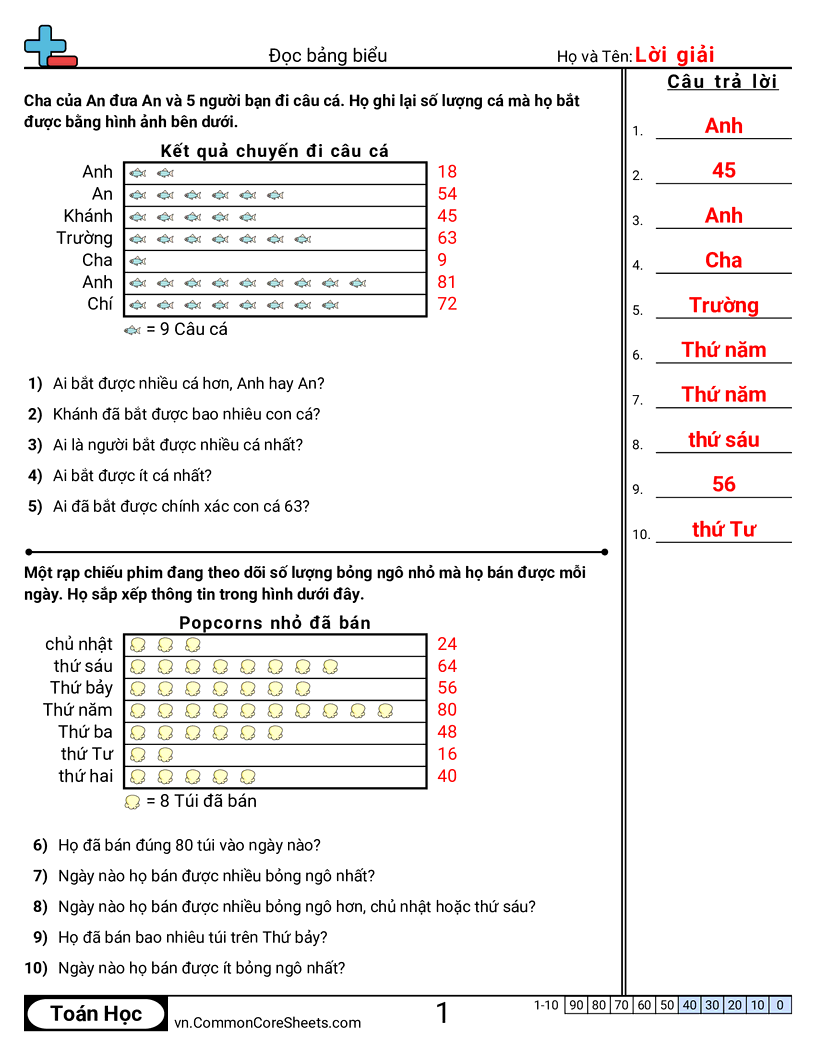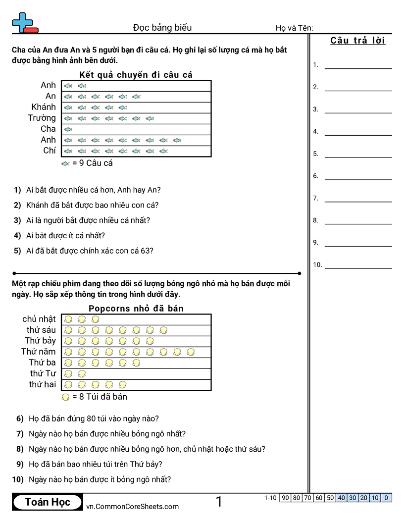 Phiếu bài tập math miễn phí cho Lớp 2 (2md10) về Đọc bảng biểu. Mỗi phiếu có 10 bài tập kèm đáp án và phù hợp cho giáo viên và học tại nhà. Bạn có thể tải PDF, tạo thẻ ghi nhớ hoặc dùng cho học trực tuyến.