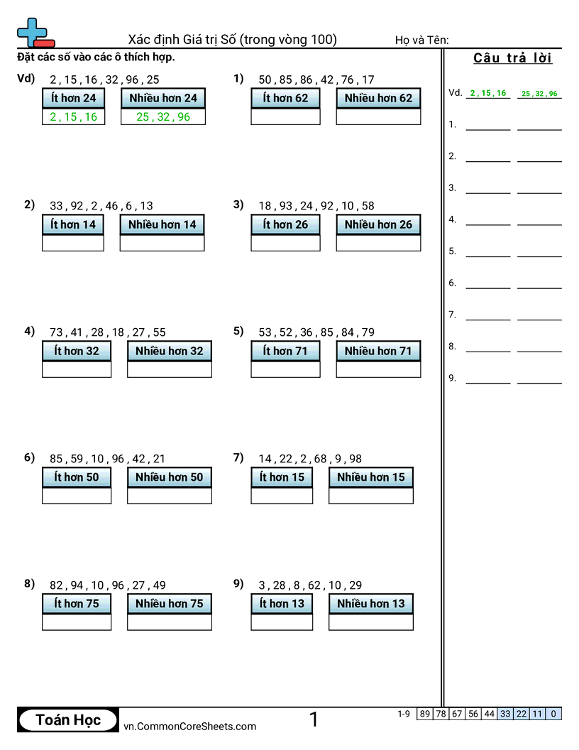 Xác định giá trị số (trong phạm vi 100)