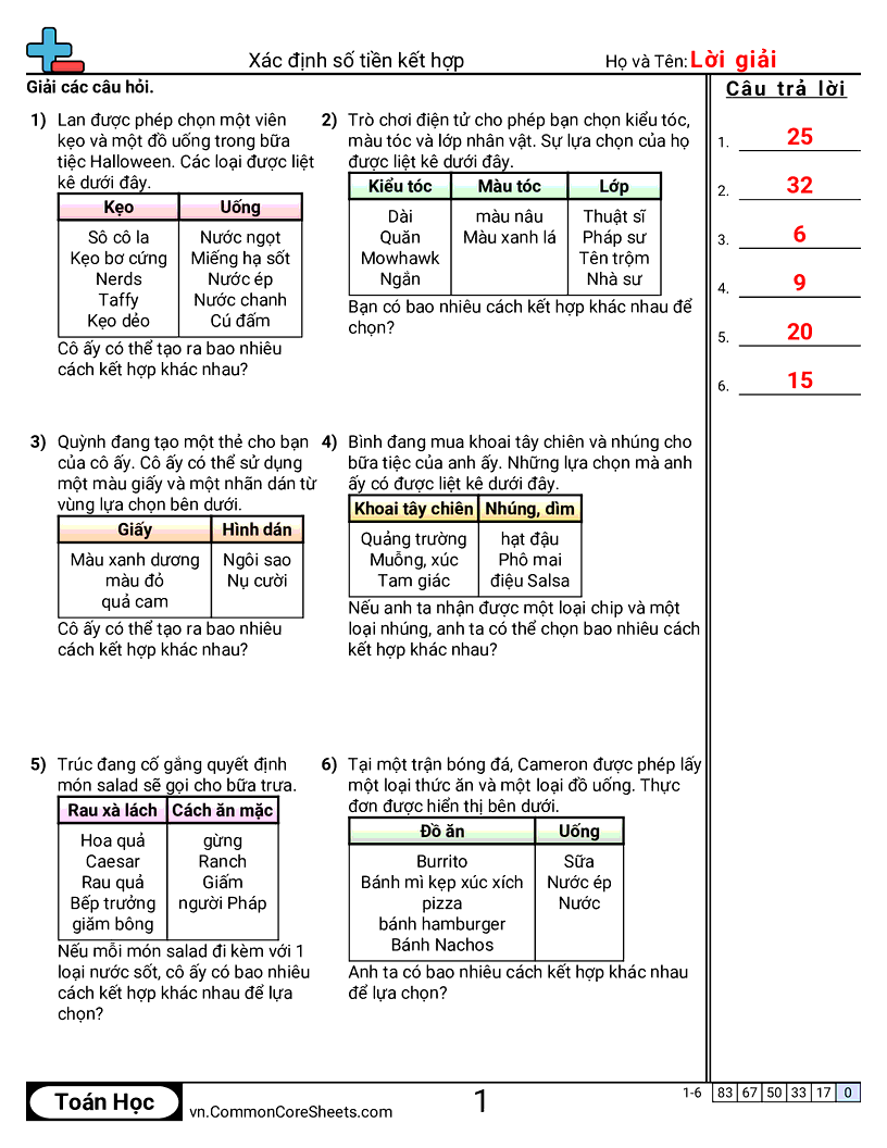 Phiếu bài tập math miễn phí về Xác định số tiền kết hợp. Mỗi phiếu có 6 bài tập kèm đáp án và phù hợp cho giáo viên và học tại nhà. Bạn có thể tải PDF, tạo thẻ ghi nhớ hoặc dùng cho học trực tuyến.