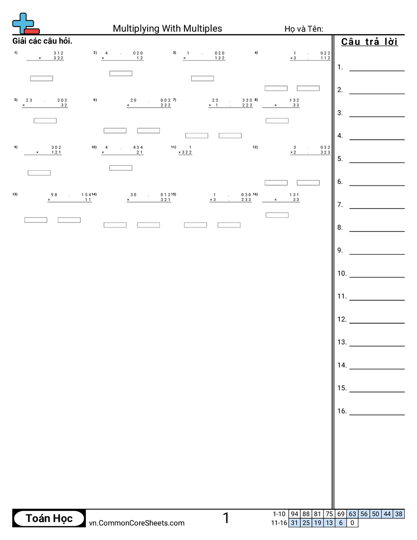 Phiếu bài tập math miễn phí cho Lớp 4 (4nbt5) về Multiplying With Multiples. Mỗi phiếu có 16 bài tập kèm đáp án và phù hợp cho giáo viên và học tại nhà. Bạn có thể tải PDF, tạo thẻ ghi nhớ hoặc dùng cho học trực tuyến.
