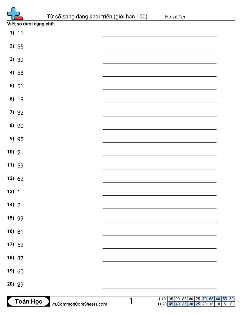 Dạng số sang dạng mở rộng (trong phạm vi 100)