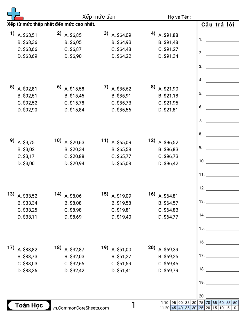 Phiếu bài tập math miễn phí cho Lớp 4 (4nf7) về Xếp mức tiền. Mỗi phiếu có 20 bài tập kèm đáp án và phù hợp cho giáo viên và học tại nhà. Bạn có thể tải PDF, tạo thẻ ghi nhớ hoặc dùng cho học trực tuyến.