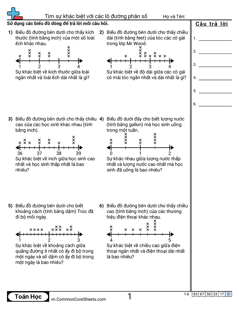 Phiếu bài tập math miễn phí cho Lớp 4 (4md4) về Tìm sự khác biệt với các lô đường phân số. Mỗi phiếu có 6 bài tập kèm đáp án và phù hợp cho giáo viên và học tại nhà. Bạn có thể tải PDF, tạo thẻ ghi nhớ hoặc dùng cho học trực tuyến.