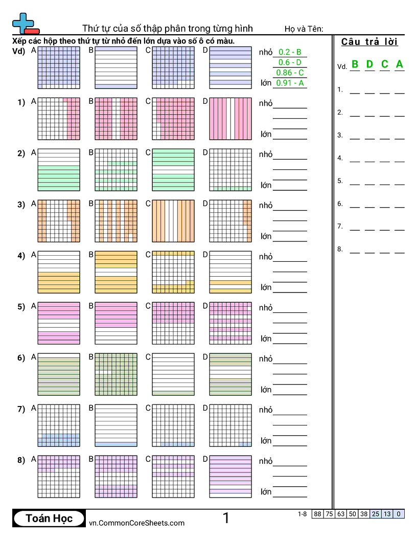 Phiếu bài tập math miễn phí về Thứ tự của số thập phân trong từng hình. Mỗi phiếu có 8 bài tập kèm đáp án và phù hợp cho giáo viên và học tại nhà. Bạn có thể tải PDF, tạo thẻ ghi nhớ hoặc dùng cho học trực tuyến.