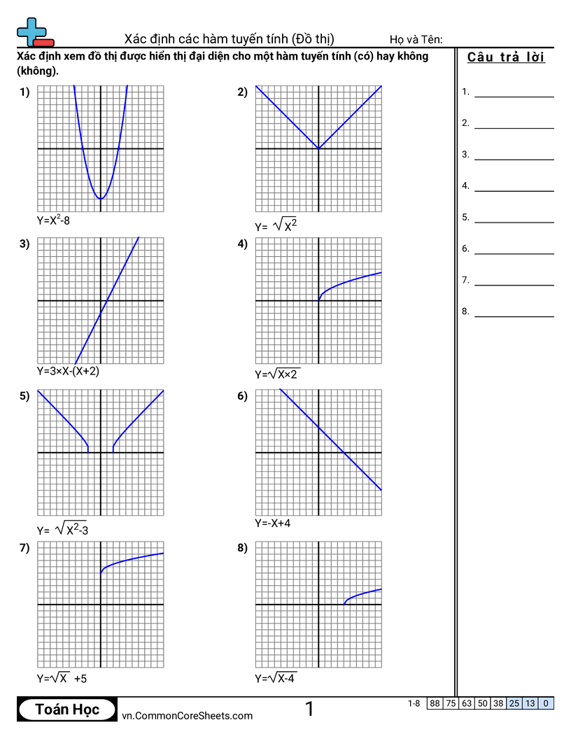 Phiếu bài tập math miễn phí cho Lớp 8 (8f3) về Xác định các hàm tuyến tính (Đồ thị). Mỗi phiếu có 8 bài tập kèm đáp án và phù hợp cho giáo viên và học tại nhà. Bạn có thể tải PDF, tạo thẻ ghi nhớ hoặc dùng cho học trực tuyến.