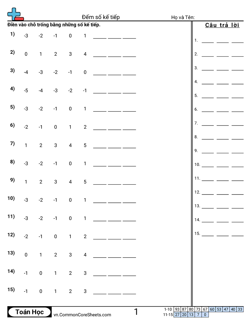 Phiếu bài tập math miễn phí cho Lớp 1 (1nbt1) về Đếm số kế tiếp. Mỗi phiếu có 15 bài tập kèm đáp án và phù hợp cho giáo viên và học tại nhà. Bạn có thể tải PDF, tạo thẻ ghi nhớ hoặc dùng cho học trực tuyến.
